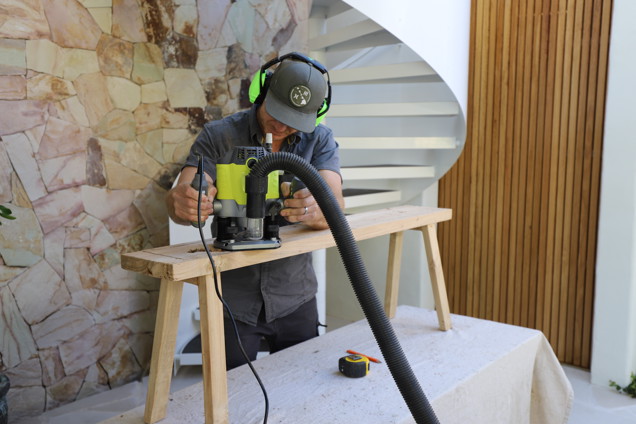 Step 3: Next up we are going to route out the inside section of these marks using the router. Im setting the cutter to 15mm deep which allows for the tiles and the fibro sheet so we end up with a nice flush finish. You’ll need to put on some safety eyes and ears for this part. The trick is here to go nice and slow take your time and let the router do the cutting.