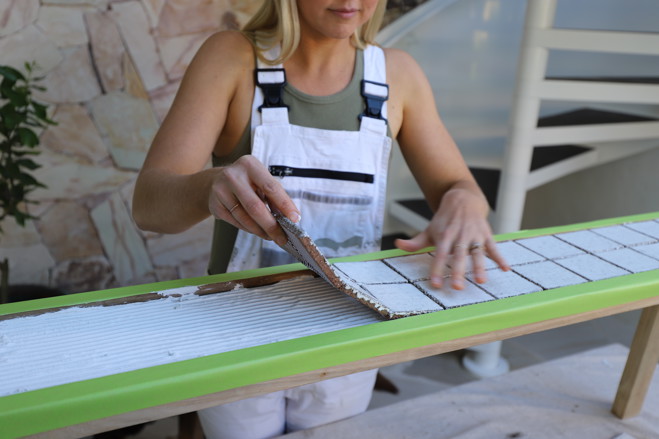 Kyal and Kara show us how to transform an old timber bench into something spectacular using leftover splashback tiles.