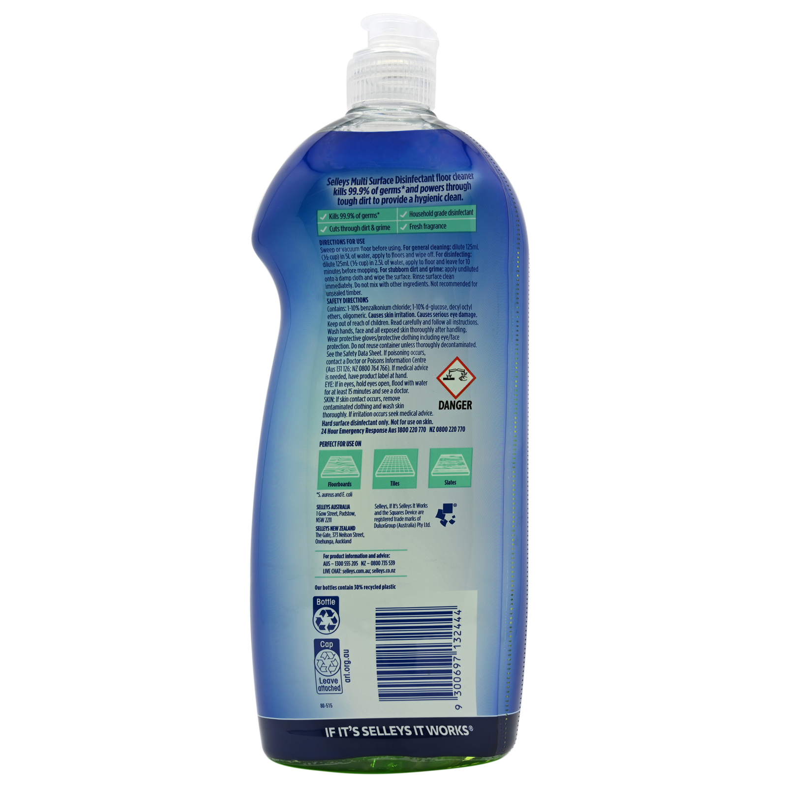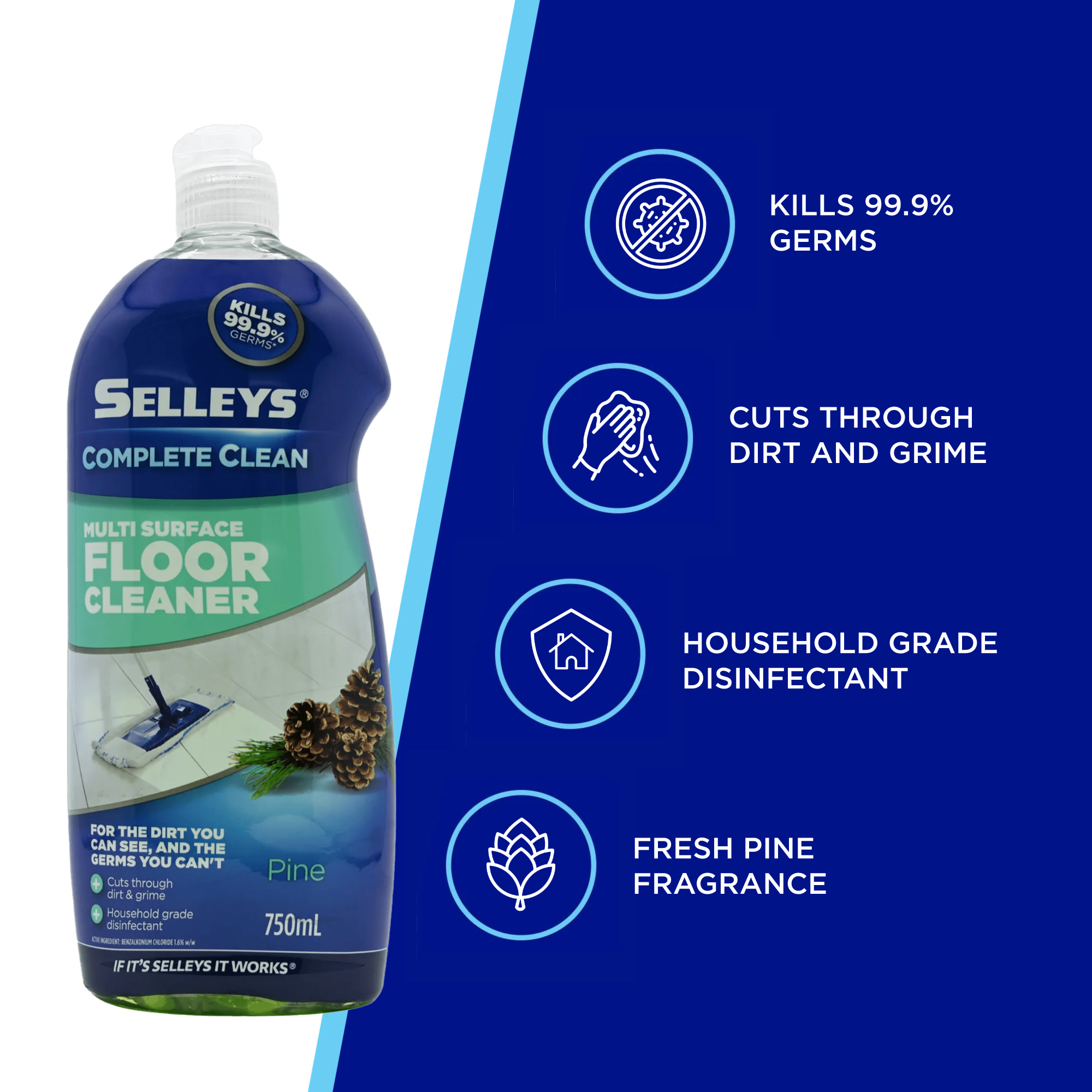 Selleys Complete Clean Multi Surface disinfectant floor cleaner kills 99.9% of germs (S. aureus and E. coli) and powers through tough dirt to provide a hygienic clean.