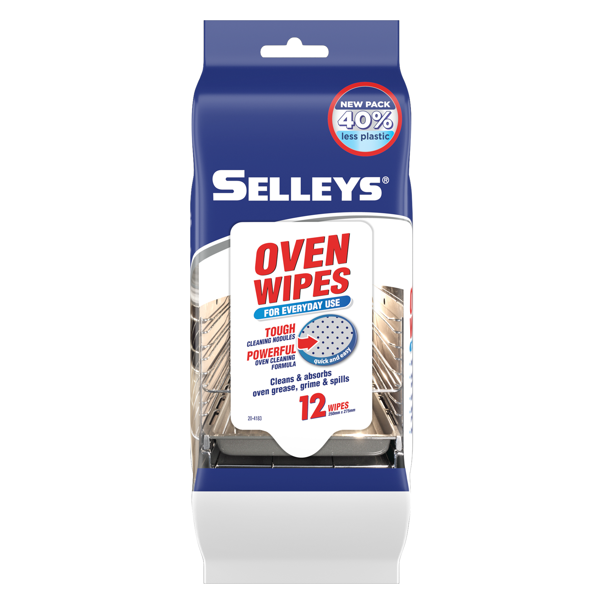 Selleys Oven Wipes have been specifically formulated to quickly and easily tackle everyday grease, grime and food spills from your oven. The combination of tough cleaning nodules work with the powerful cleaning formulation to loosen burnt on food and cut through grime, whilst the strong cloth traps and absorbs grease and food spills.