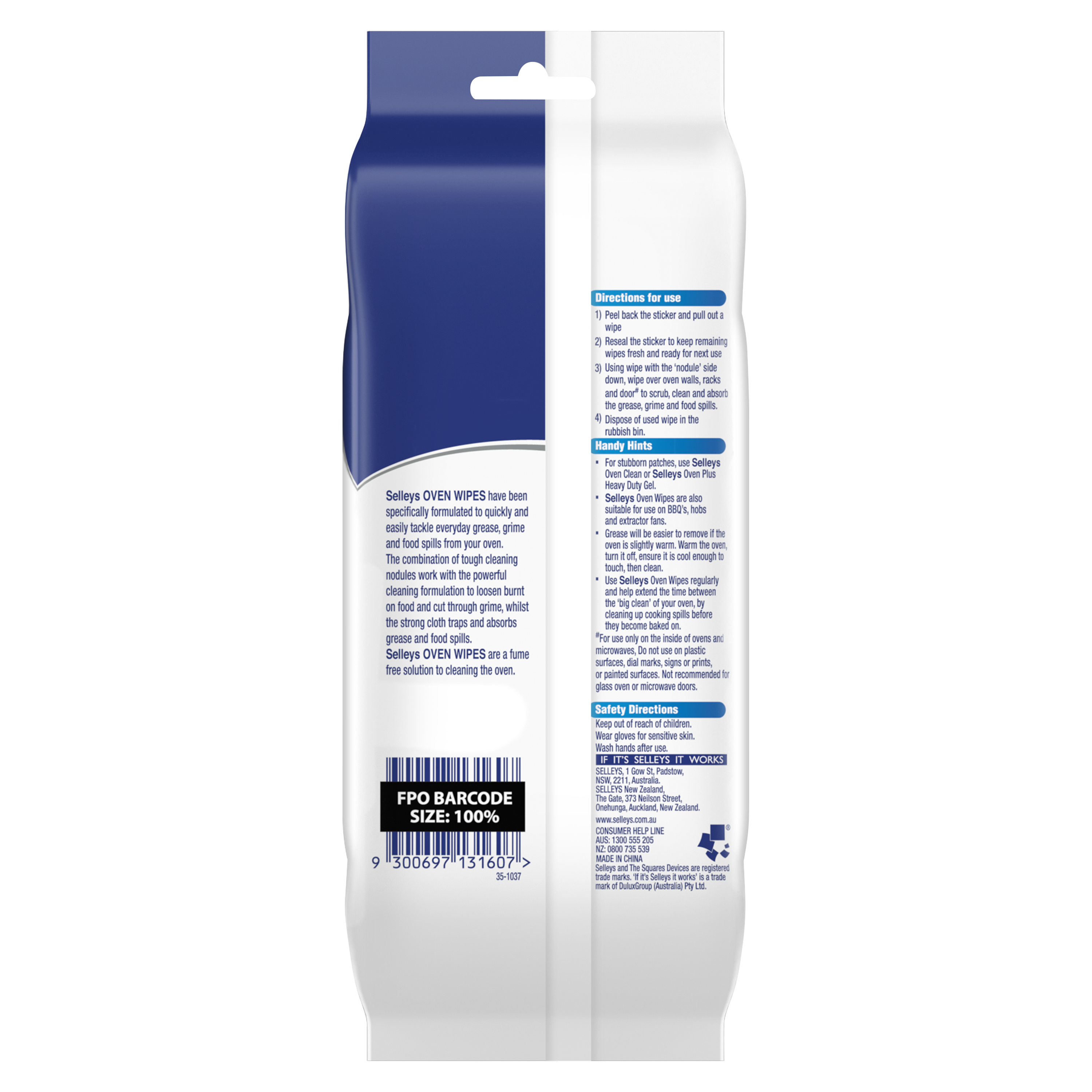 Use Selleys Oven Wipes regularly and extend the time between ‘the big clean’ of your oven, by cleaning up cooking spills before they become baked on.