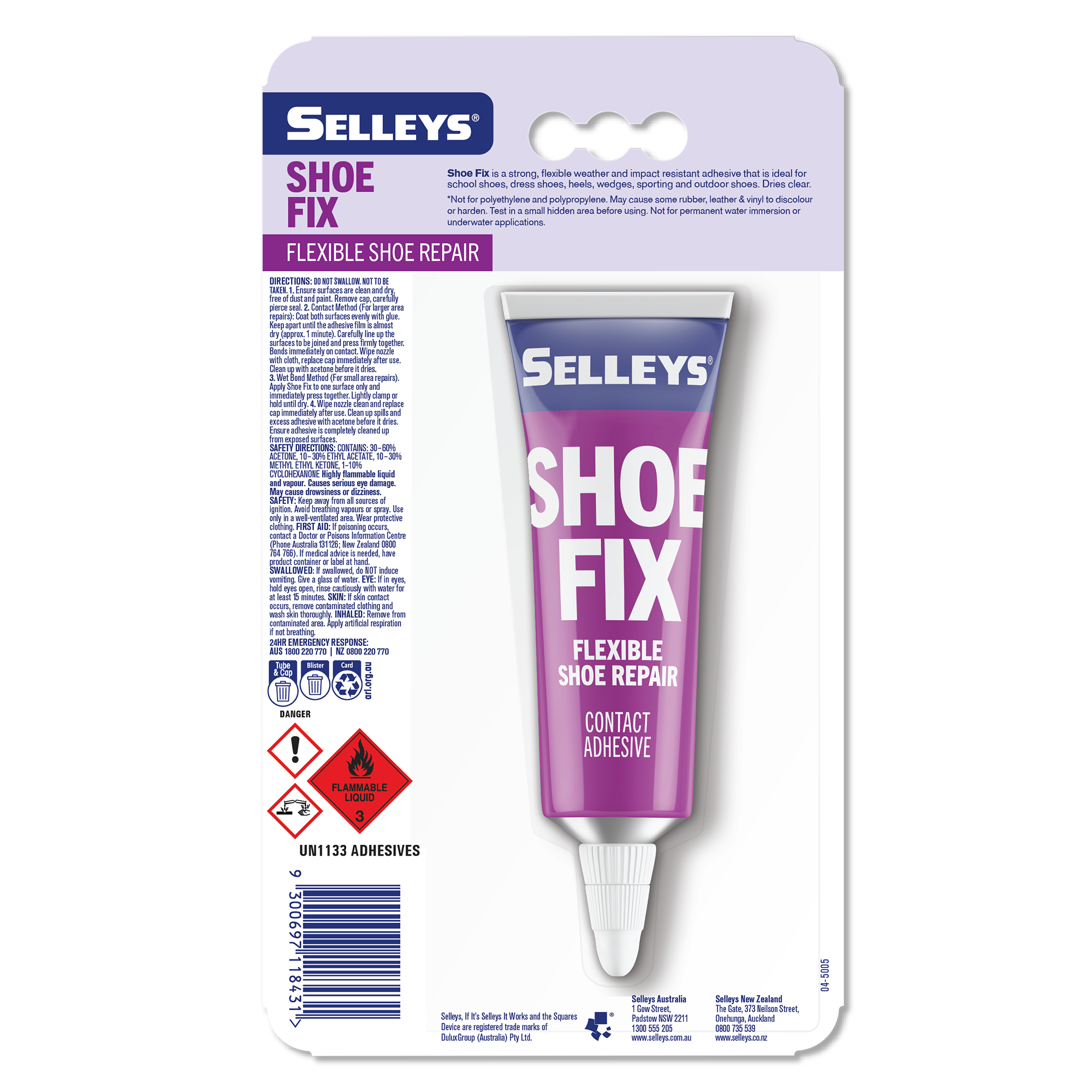 Selleys Shoe Fix is a strong, flexible, weather and impact resistant adhesive that is ideal for most shoe repairs.