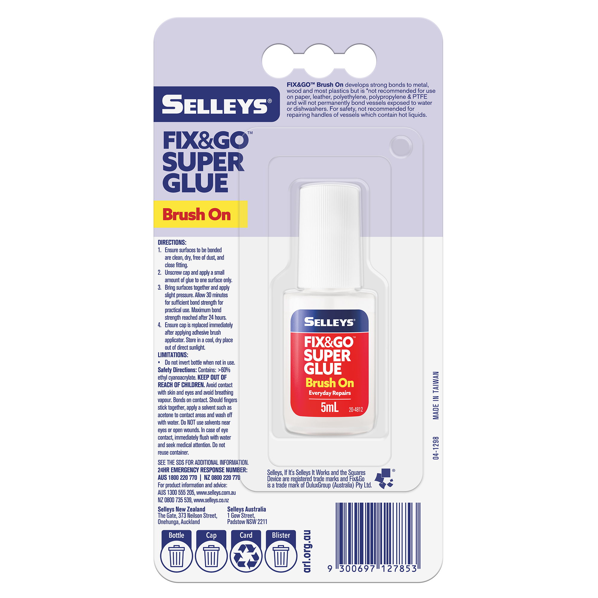 Selleys Fix&Go Supa Glue is a fast setting supa glue that dries colourless and sets within 10 seconds.