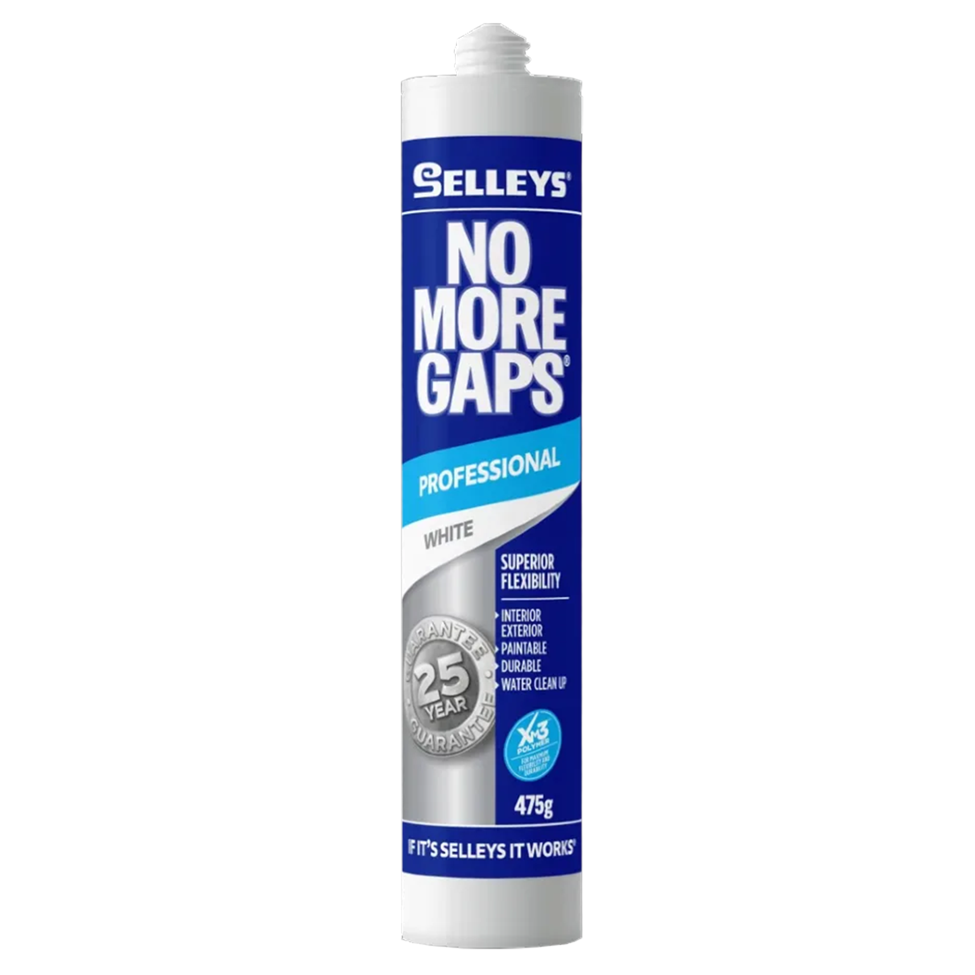 Selleys No More Gaps Professional is an easy to use gap filler ideal for filling gaps and cracks around skirting boards, cornices and inside window and door frames. This water-based formulation has been designed to cope with building movement to ensure a long lasting and crack resistant finish and it is suitable for interior and exterior applications.