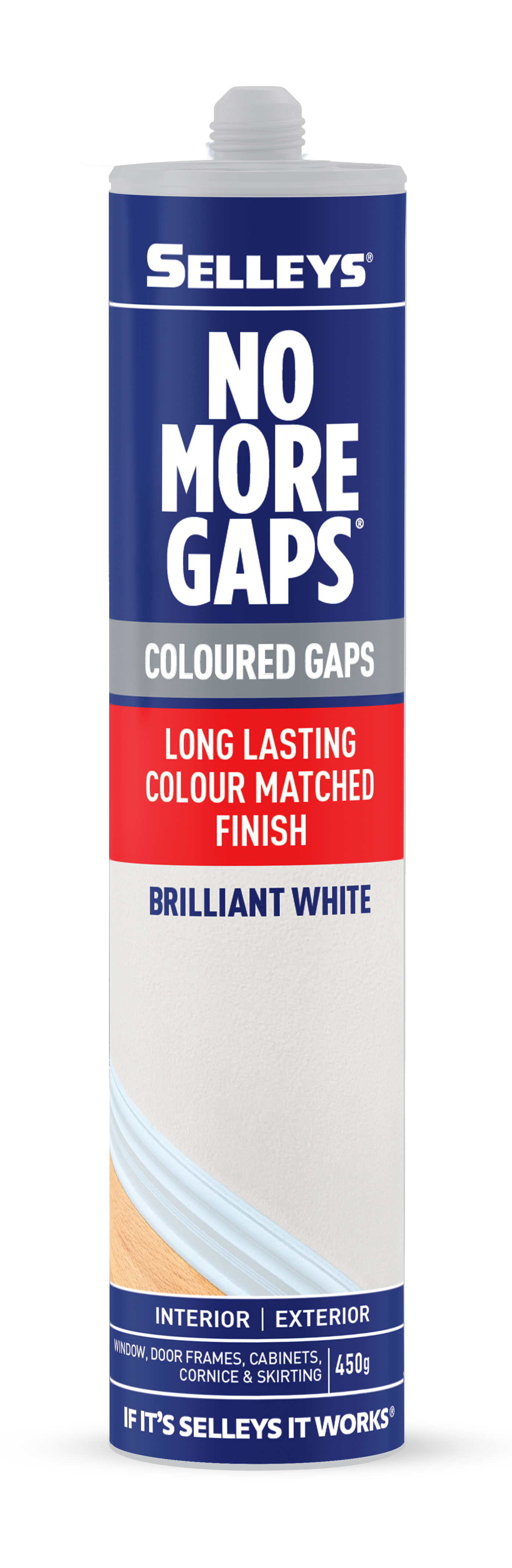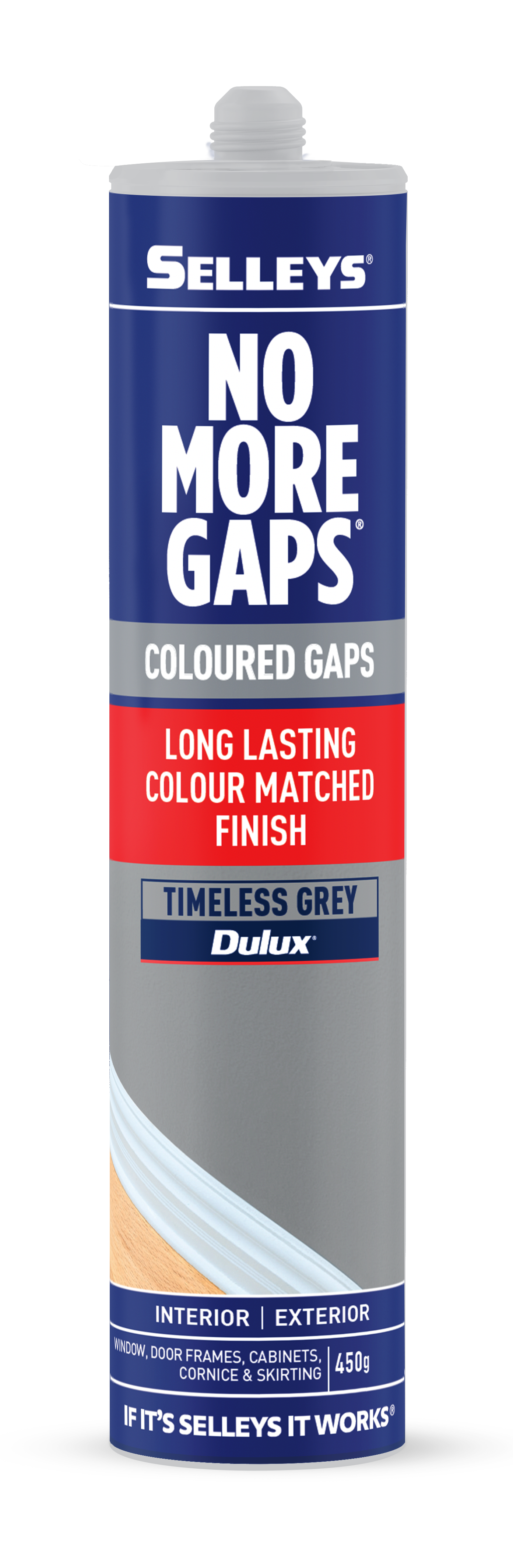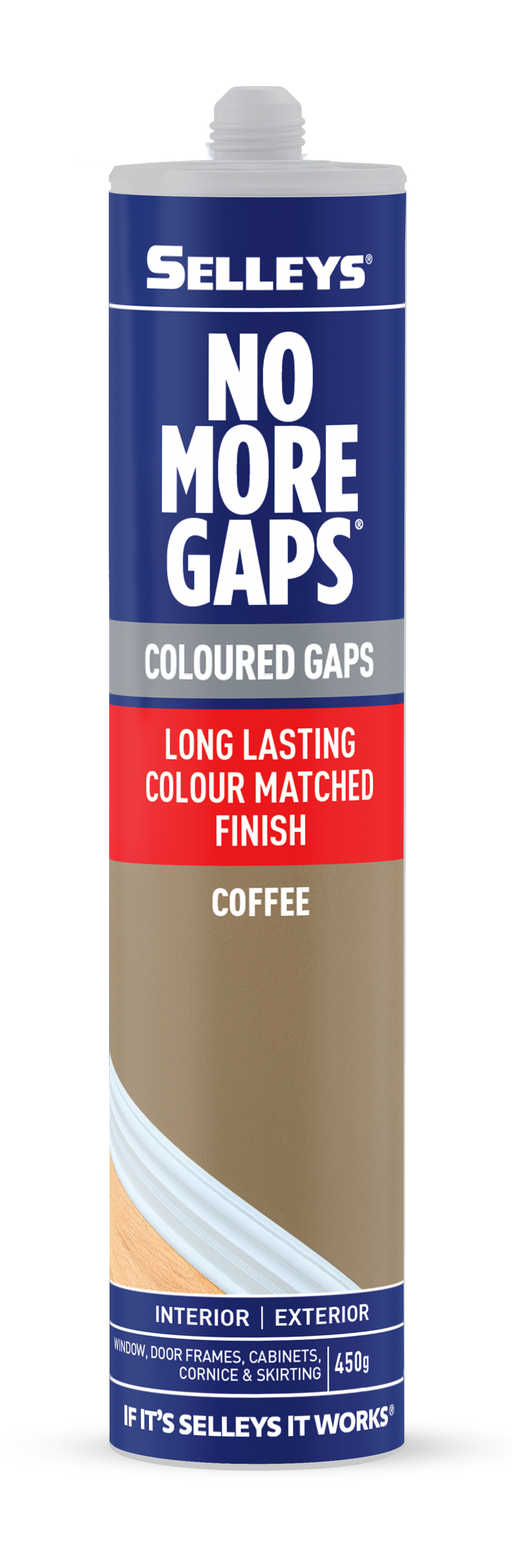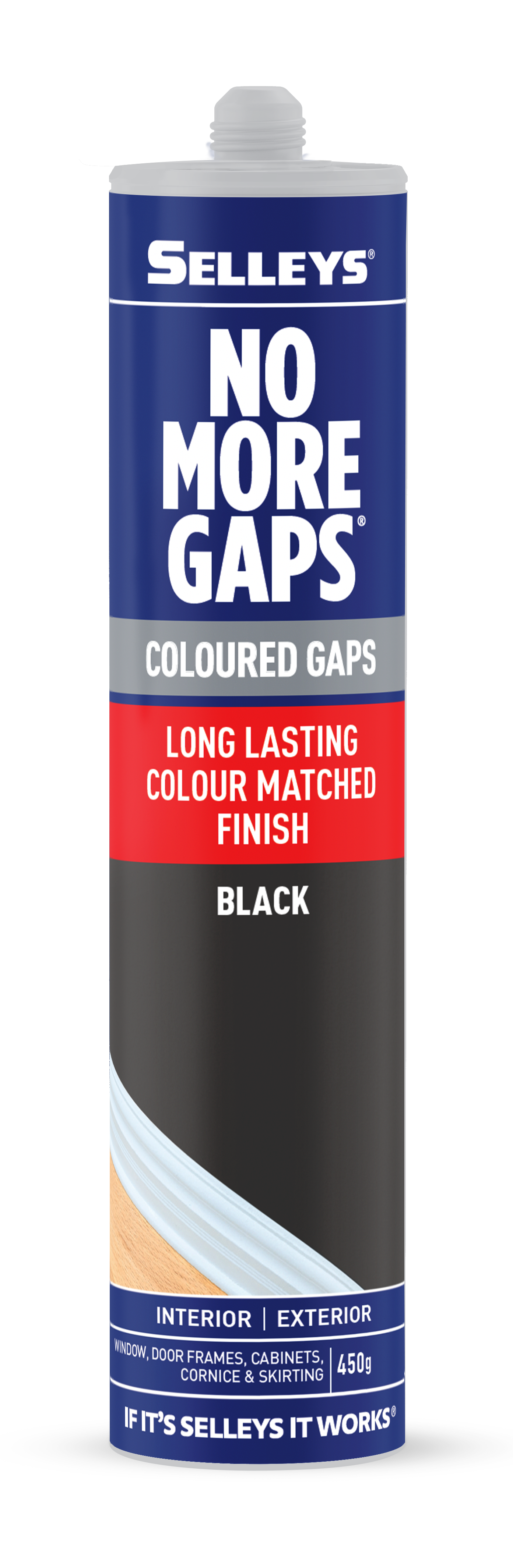 Selleys No More Gaps Coloured Gaps is a flexible gap filler available in a range of modern colours, to fill those unsightly gaps and cracks around the home and take away the need to paint over.