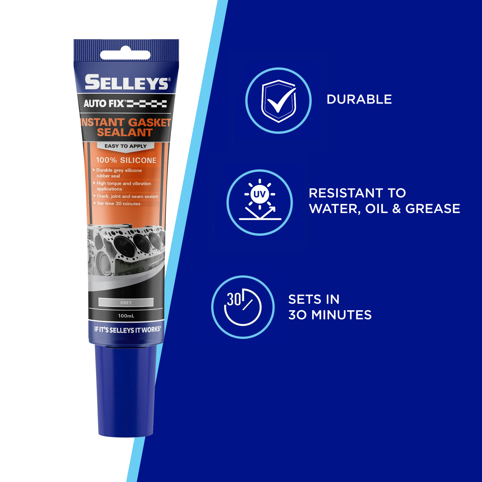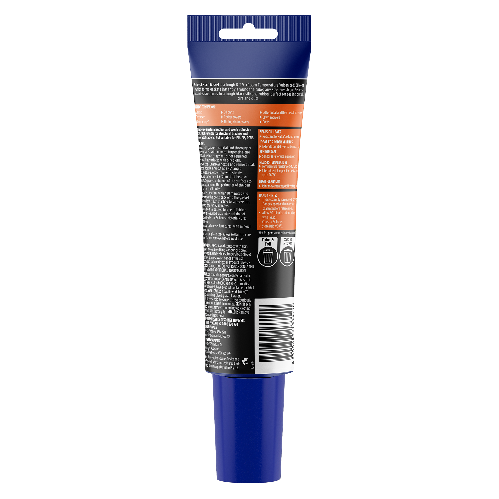 Selleys Auto Fix Instant Gasket is a tough R.T.V. (Room Temperature Vulcanized) Silicone which forms gaskets instantly around the tube; any size, any shape. Selleys Instant Gasket cures to a tough black silicone rubber perfect for sealing out oil, dirt and dust.