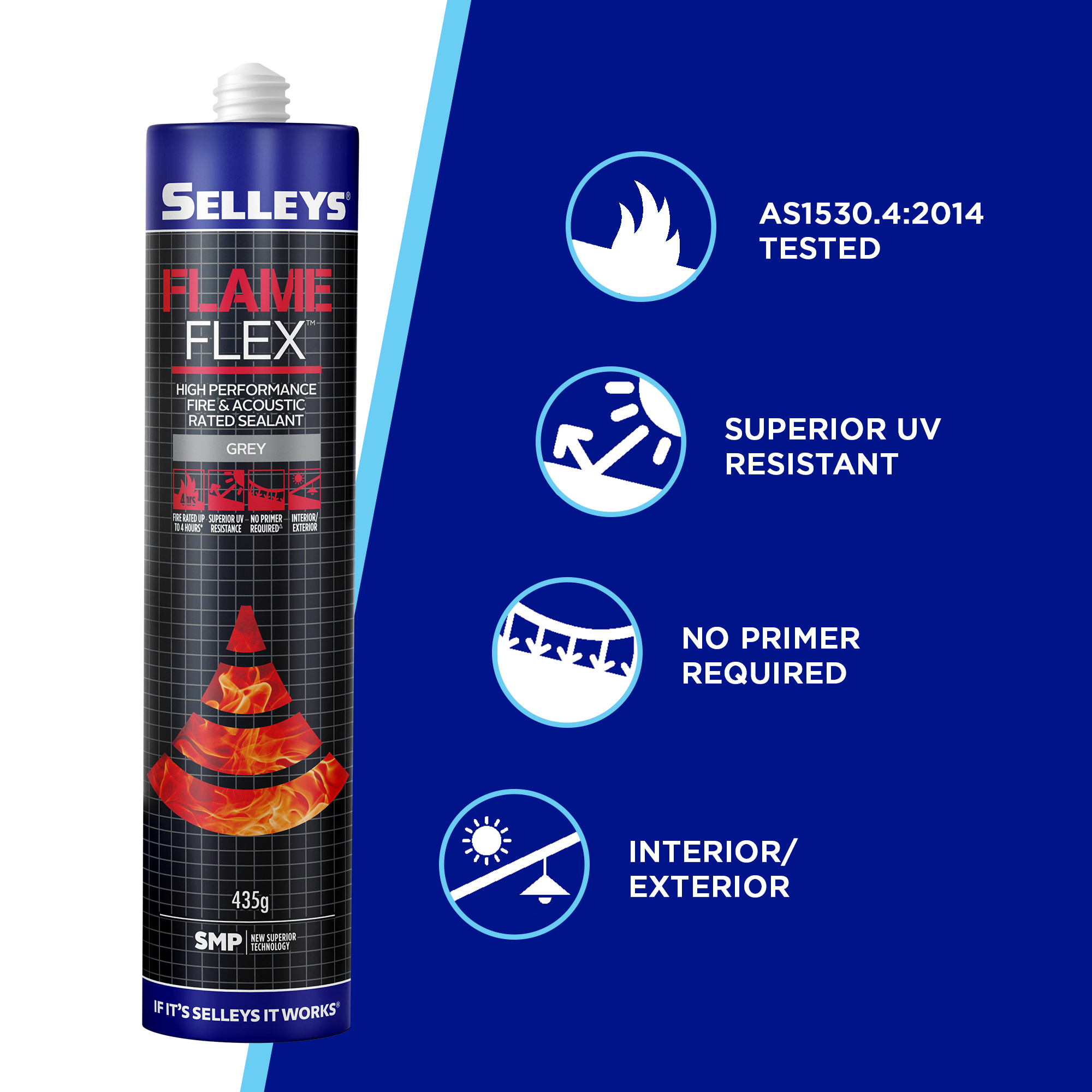 Selleys Flame Flex High Performance Sealant can be used for construction joints & gaps where a fire rated seal is specified*. It can be used where an acoustic rated seal is needed.