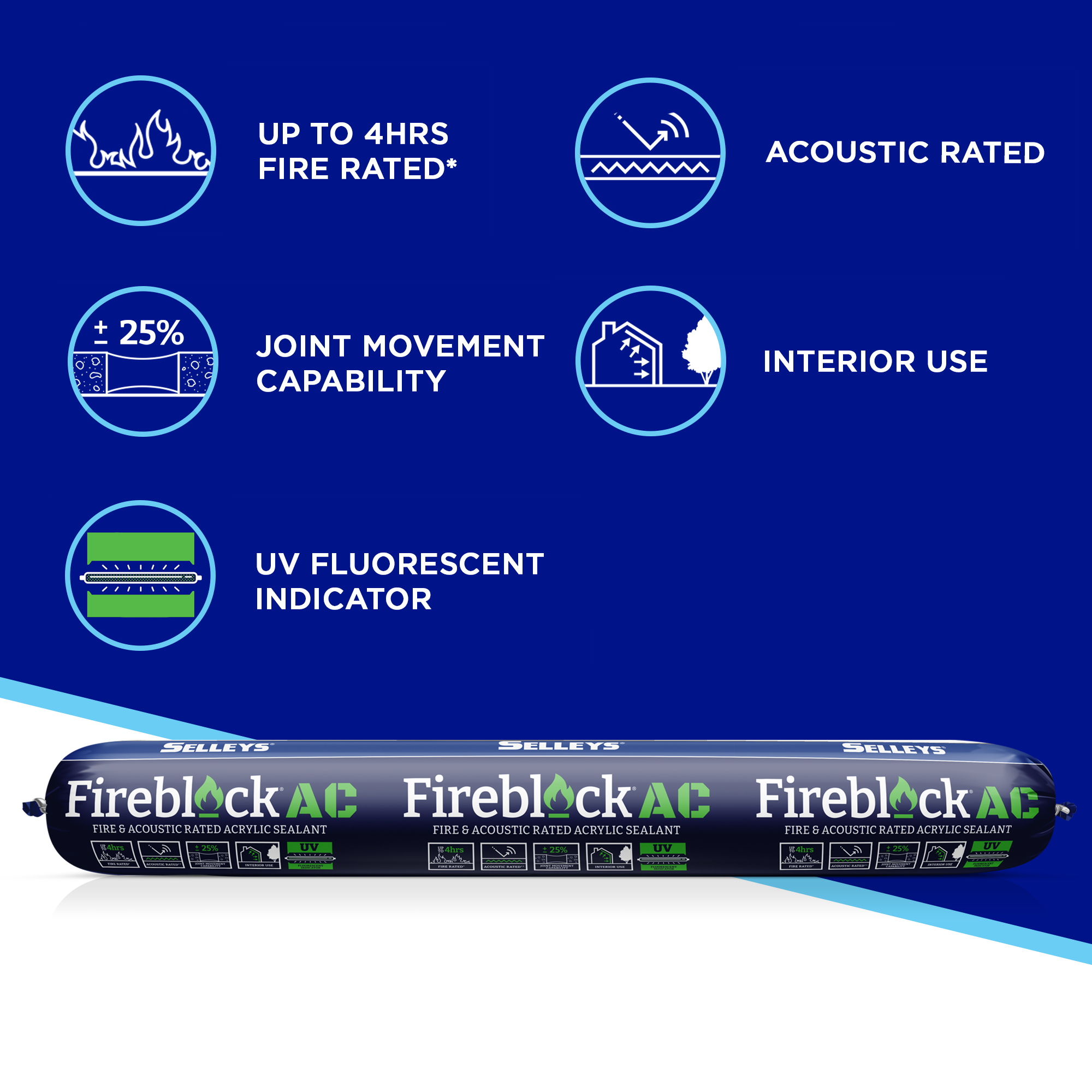 Selleys Fireblock AC® is a low toxic, single-component acrylic fire rated sealant featuring UV Tracer technology that has been developed for internal perimeter and penetration seals in fire-rated construction up to 240 minutes in accordance with AS1530.4-2014.