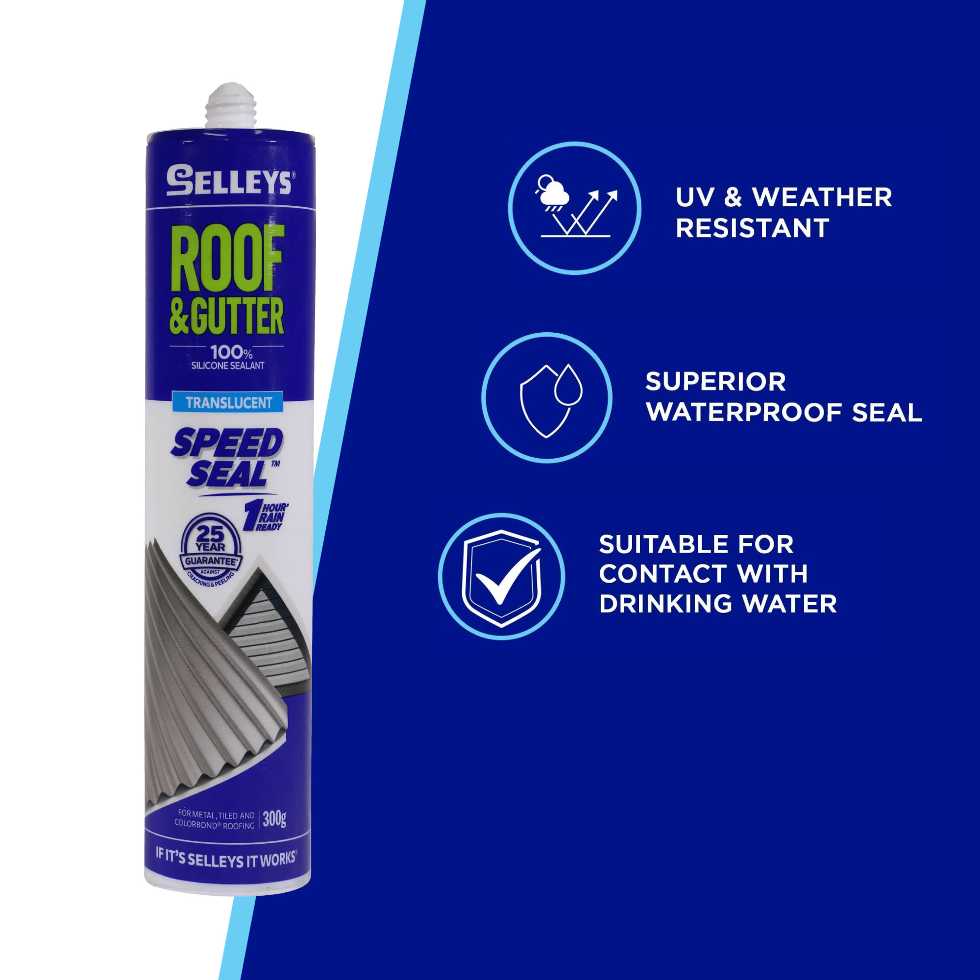 Selleys Roof and Gutter Silicone is ideal for repairing leaks in most forms of roofing and guttering. It’s a neutral (non-acid) 100% silicone that offers superior adhesion and resistance to lifting, with a flexible seal. Guaranteed for 25 years against cracking, crumbling and peeling away, it can also be used on vents and downpipes, and for weatherproofing caravans and trucks. Also available in a range of Colorbond ® colours including Black, Classic Cream, Deep Ocean, Dune, Galvanised Grey, Grey, Ironstone, Manor Red, Monument, Paperbark, Surfmist, Cottage Green, Translucent, White and Woodland Grey.